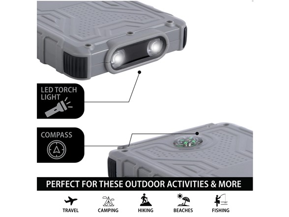 - Powerful built in twin flashlights and; integrated compass make this the perfect device for all your outdoor activities, and the sleek slim size makes it the perfect fit for your pocket, backpack, or purse