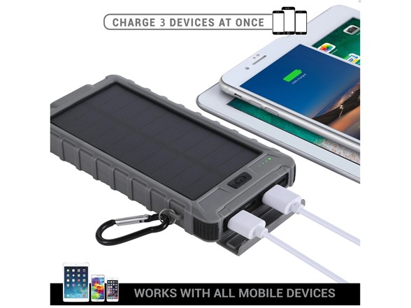 - The Tech Theory PowerUp Solar 10,000mAh backup battery adds an additional 30+ hours of talk time to your phones and can be powered by solar power or conventional power
