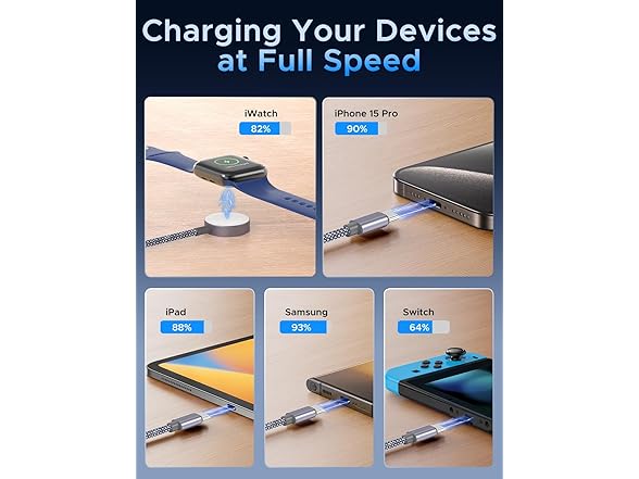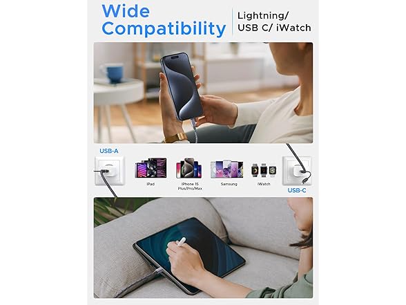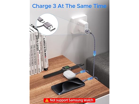 (1 or 2 PACK) Amasuki 3-in-2 USB-C Charging Cable for Apple Watch, USB-C, and Lightning Devices