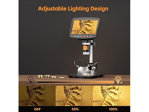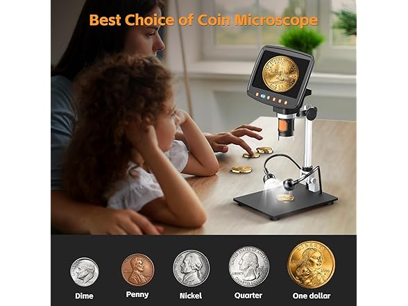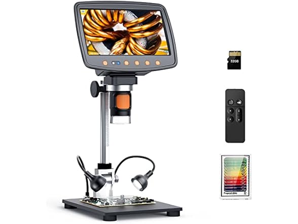 12MP 1500X HDMI Digital Coin Microscope with 7'' LCD Screen with Ultra-Precise Camera Sensor, Compatible with TV/Windows/Mac, 32GB TF Card