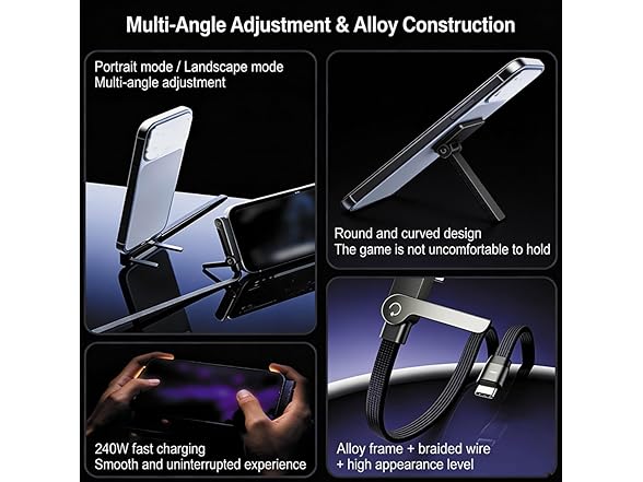 2-in-1 Invisible Holder Charger Cable–240W Fast Charging Cord with Phone Stand