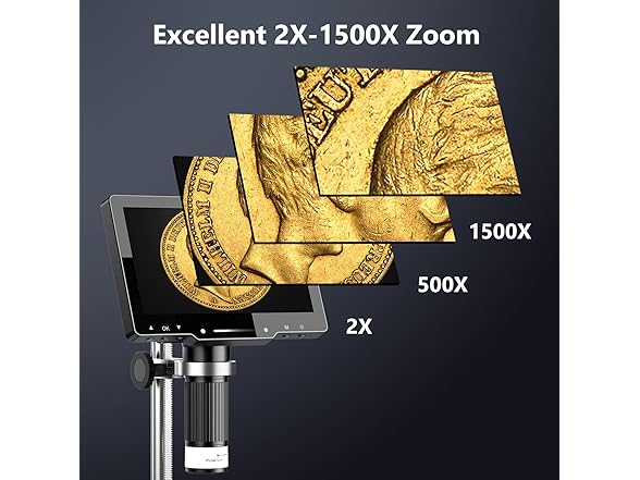 - 【Higher Bracket, Bigger Base】Hayve HY070 PRO microscope for adults use bigger base and 10.4inch taller bracket which can provided you a bigger working space and a wider field of view. Without installing any extension tube, the total coin (dime, penny, nickel, quarter, dollar, even the large silver dollar) can be captured in the microscope easily . In a word, Hayve is a best choice for coin lovers.
