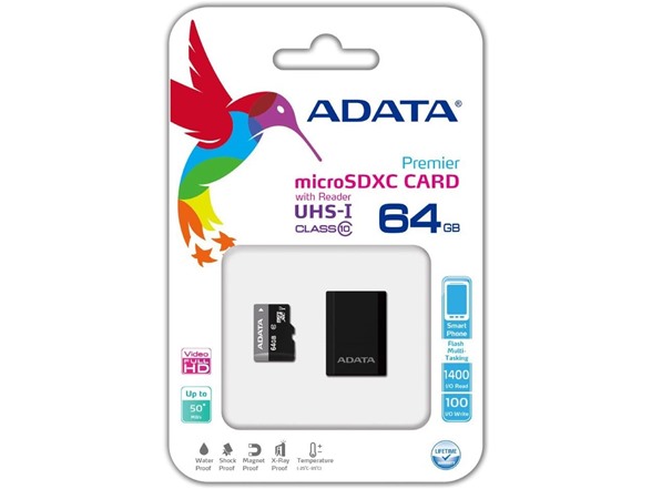 ADATA Premier 64GB microSDHC/SDXC UHS-I U1 Class 10 Memory Card with Adapter (AUSDX64GUICL10-RA1)