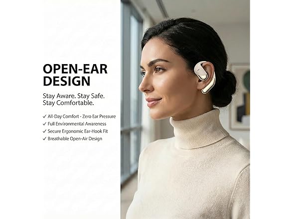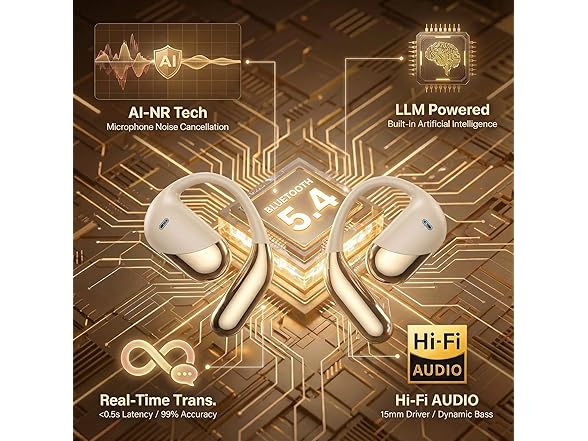 - Open-Ear Comfort,Durability : Crafted as open ear earbuds, these wireless earbuds weigh just 8g per earbud (lightweight PC material) with IPX68 waterproofing. Ergonomic silicone ear hooks ensure a secure, stable fit—perfect for sports, workouts, and daily use. These open ear earbuds let you enjoy audio while staying aware of your surroundings, combining the best of translation earbuds with all-day comfort.