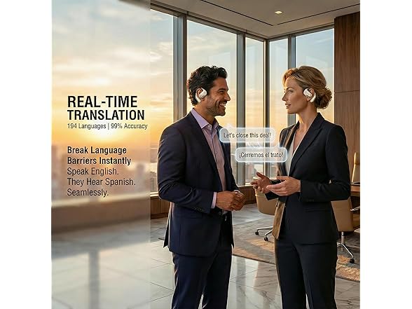 - Bluetooth 5.4 Fast,Stable Connection : These wireless earbuds feature state-of-the-art Bluetooth 5.4 for ultra-fast data transfer and a stable 33-foot connection—critical for translation earbuds real time. Auto-on and auto-connect kick in instantly, so you get low-latency audio the moment you take them out of the case. Reliable connectivity makes them top-tier translating earbuds for on-the-go use.