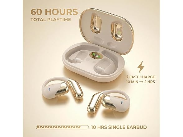 - 60-Hour Playtime,Rapid Charging : Powered by a robust lithium battery with Energy Lock technology, these wireless earbuds offer 10 hours of single playback per charge, plus 50 extra hours via the charging case (total 60 hours). Ideal for translation earbuds that need to keep up with your day, a quick 5-minute charge delivers 1 hour of use—never miss a conversation with these long-lasting translator earbuds.