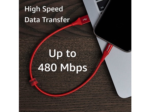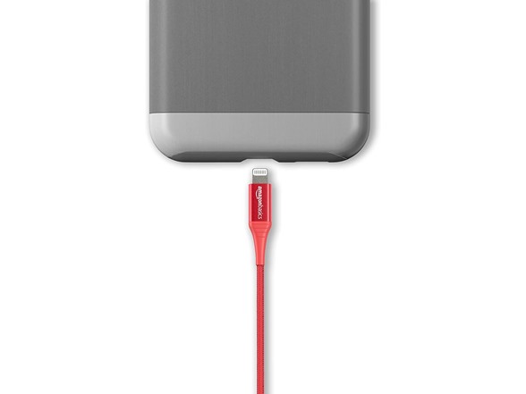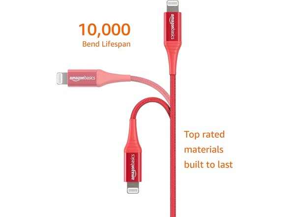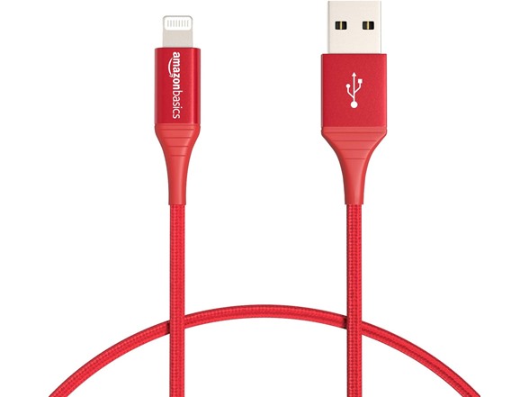 Amazon Basics iPhone Charger Cable, Nylon USB-A to Lightning, MFi Certified, for Apple iPhone 14 13 12 11 X Xs Pro, Pro Max, Plus, iPad, 10,000 Bend Lifespan, Red, 1-Ft