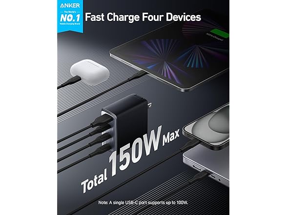 Anker 4-Port 150W GaN Foldable USB-C Charger