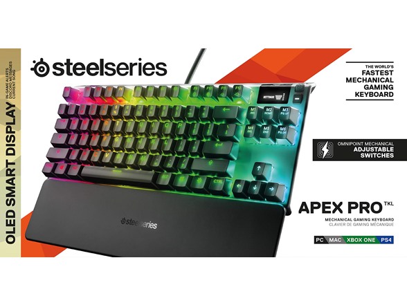 SteelSeries Apex Pro TKL Wired HyperMagnetic Gaming Keyboard Esports Tenkeyless OLED Screen Adjustable Actuation PBT Keycaps Bluetooth 2.4GHz USB-C