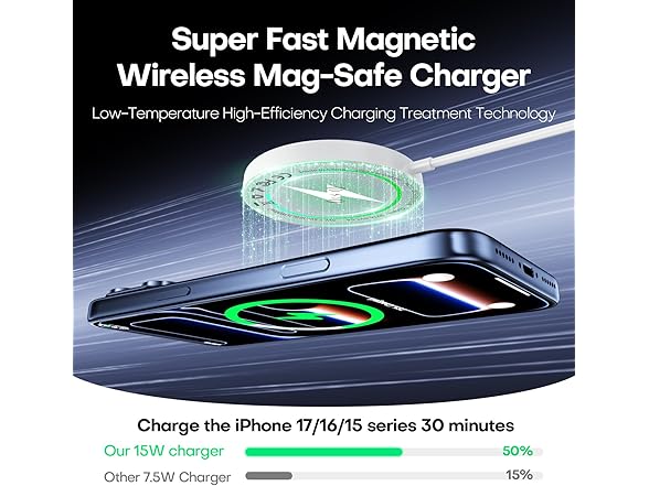 - 【Superior Safety Wireless Charger iPhone】 This wireless charging pad for iPhone 17 16 15 Pro uses advanced technology to provide you with a better and safer fast charging experience, prevent your iPhone from overcharging, over-current, over-voltage, overheating, and short circuits. The optimized magnetic design makes charging easier and made of high-quality materials and advanced MagSafe magnetic, improving energy conversion and reducing heat while charging,protect your equipment safe and fast charging
