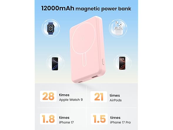 for Magsafe Portable Charger Power Bank, 12000mAh Magnetic Power Bank with 15W Wireless & 20W USB C Fast Charging, Ultra-Slim Battery Pack for iPhone 17/16/15/14/13/12 Series, Travel Essential