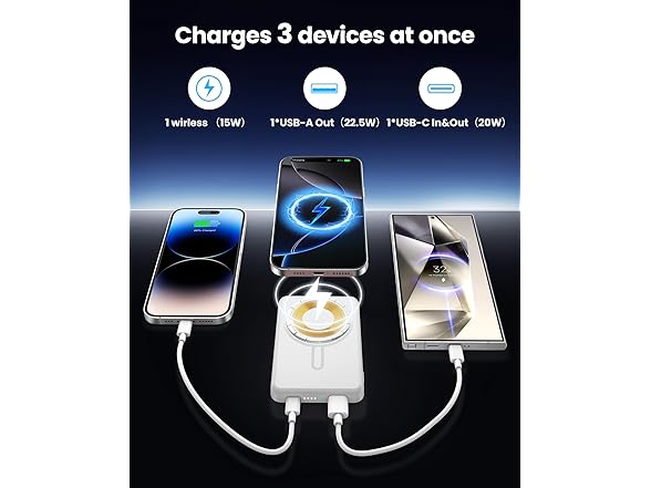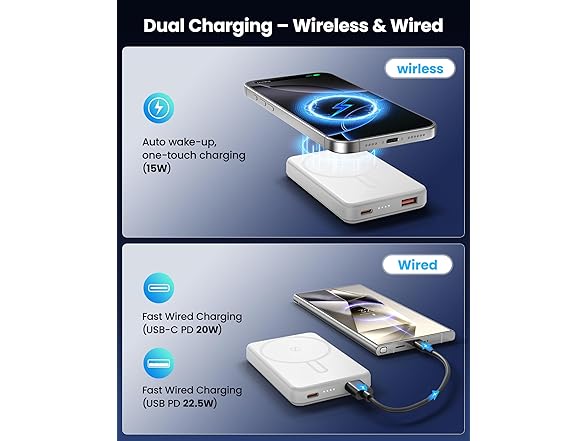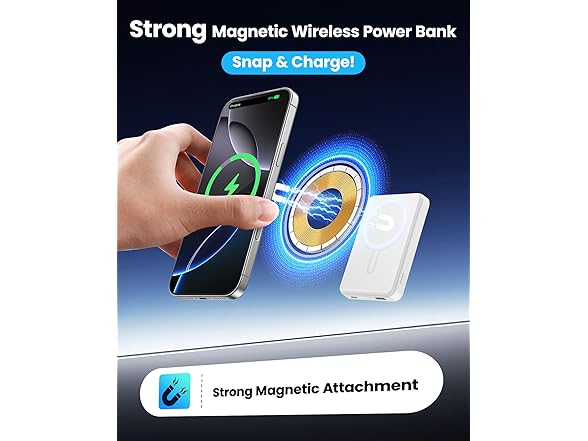 for Magsafe Power Bank 5000mAh, 0.57'' Ultra Slim Magnetic Battery Pack, 15W Wireless Magnetic Portable Charger, 20W PD Fast Charging, Battery Pack for iPhone 17/16/15/14/13/12 Series