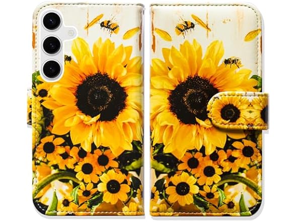 Bcov Case for Samsung Galaxy A26 5G,Sunflower Bee Flip Phone Case Wallet Cover with Card Slot Holder Kickstand Case for Samsung Galaxy A26 5G