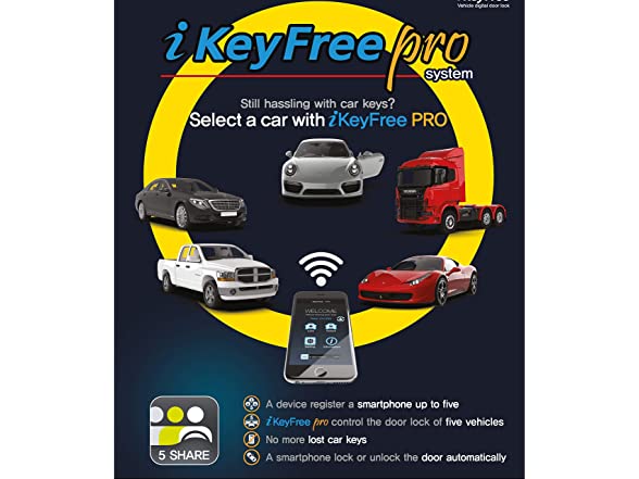 BOYO Vision iKeyFree Pro - Smart Keyless Entry System via Smartphone for Multiple Vehicles (iOS & Android Compatible), Multicolored