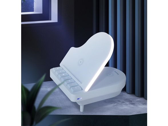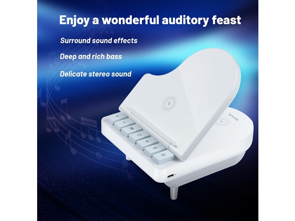 Cell Phone Stand with Bluetooth Speaker and Wireless Charger for Phone, Watch, Hearphones, Bluetooth Speakers with Charging Station & White Noise Mode & LED Light for Home Decoration, Bedroom, Gift