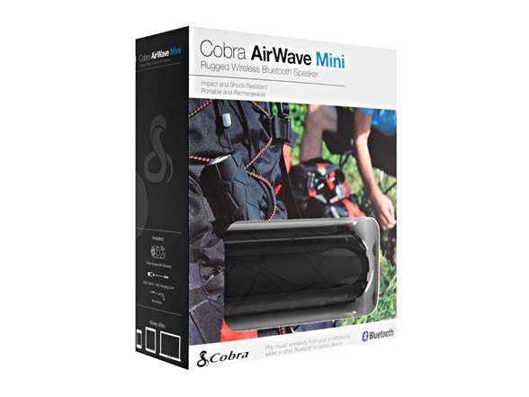 Cobra AirWave Mini is a small but powerful Bluetooth® speaker. It is shock, dust, and water resistant to go with you everywhere. The compact size and long battery life will keep the party going while not filling up your valuable cargo space. It’s perfect for bicycling, boating, skiing, camping, travel, the beach, the office, dorm room, everywhere.