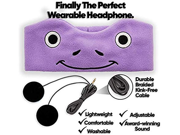 (1) CozyPhones Kids Headphones Volume Limited with Ultra-Thin Speakers & Super Soft Fleece Headband, Purple Froggy