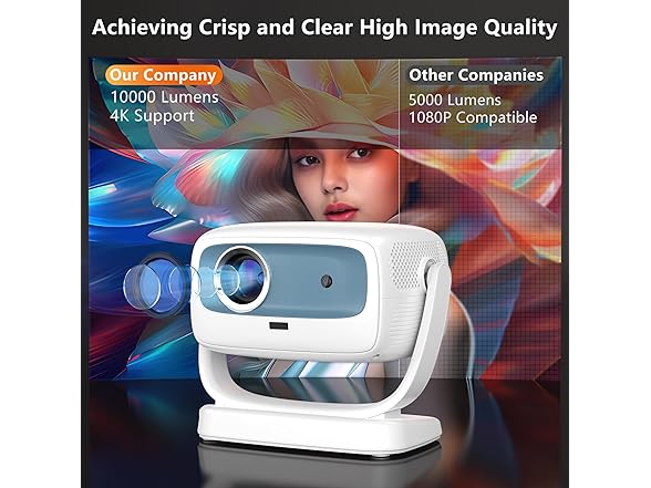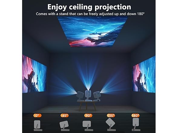 - 🆙【Built-in Adjustment Stand】R2 4K projector with wifi and bluetooth comes with a 180-degree adjustable stand, and is equipped with 4D Keystone correction/Electric focus to meet the needs of indoor and outdoor multi-scenario playback. The best 4k+ projector for bedroom ceilings!