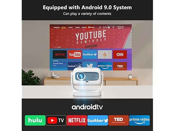 - 🎦【Built-in Steaming APPs】The R2 smart home projector has a built-in system with a lot of APPs No input source is required. You can directly download the latest APPs such as Netflix and Hulu to watch videos by connecting to wifi. Also supports the connection of multiple devices such as HDMI/USB/smartphone/PC/TV stick/audio,etc.