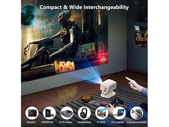 - 🛜【2.4+5G Dual-band WIFI6】 Compatible with Android and IOS devices wirelessly screen mirror function, 2.4+5G dual-band wifi 6 ensures a truly delay-free and stable screencasting experience. The mini bluetooth projector also supports BT5.0 connection to Bluetooth speakers.