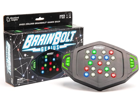 Educational Insights BrainBolt Genius - Handheld Memory Game, Portable Puzzles for Kids Ages 8-10, Educational Games and Brain Teasers for Kids, Teens, and Adults, Handheld Electronic Games