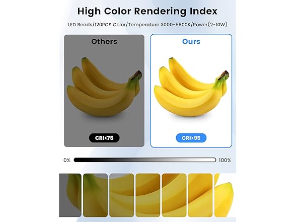 - CRI>95: High Color Rendering Index (95+) and no strobe, create brighter and softer lights, help leave your photos looking more natural and great texture.