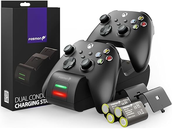 - [SMART CHARGING & LED INDICATOR] Fosmon DUAL 2 MAX Charging station compatible with Xbox Series and Xbox One controllers is certified by SGS and built with an intelligent charging board that provides the charging dock with overheating and short circuit protection. The battery charger will stop charging automatically when the batteries are fully charged. There are 2 LED indicators to indicate the charging status of each individual slot.