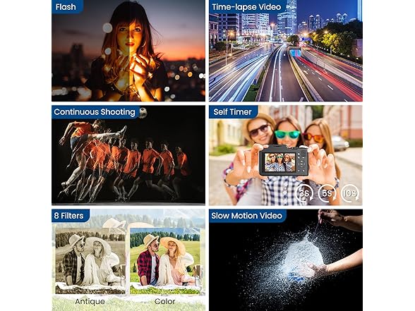 - Multifunctional Cameras for Photography: This compact digital camera includes features like timer photography, continuous photography, slow motion, looping, and time-lapse, allowing you to be more creative with your videos. It also features date and time stamp, various filters, beauty features, selfie, portrait mode, and scene modes to encourage your creativity. This 5K 80MP digital camera is incredibly easy to use, offering an unprecedented photography experience. It's suitable for everyone, including beginners, teenagers, content creators, and more.