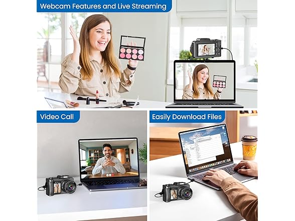 - Vlogging Camera as Webcam & Easy File Transfer: This 5K vlogging camera for YouTube video recording not only takes photos and records videos, but also functions as a webcam for video calls, blogging, live streaming, or online tutorials. It's an ideal choice for vloggers. Photos and videos can be easily transferred to a computer via USB, making them instantly shareable on social media.