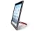 Hinged flip-out handle can be used for a secure one-hand grip or stand