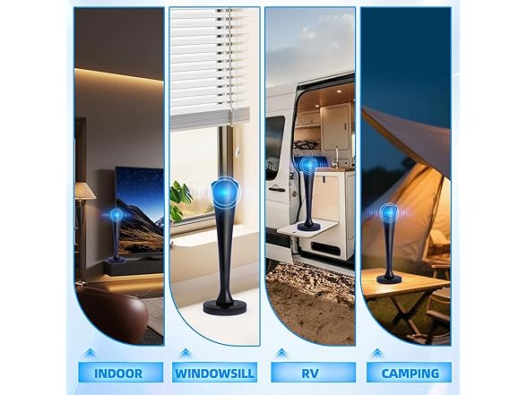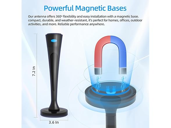 - ⚜️Indoor and outdoor antenna: This Digital TV Antenna uses high-quality materials and a new waterproof cover, making it both stylish and functional. It can be placed 360° without any restrictions, and the magnetic base allows for easy installation on most metal surfaces. Its sleek, compact design seamlessly blends into any environment, making it suitable for use not only indoors but also outdoors. Whether it is installed on the living room desktop, the window of the room, the wall under the eaves, or on the roof of the RV, you can use it with confidence!. Enjoy a stable signal even in adverse weather conditions!