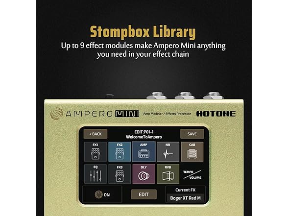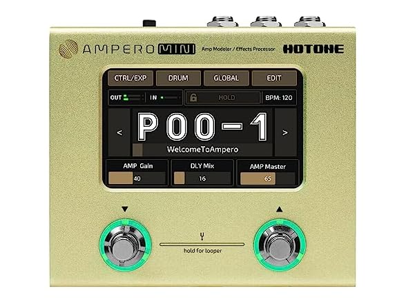 Hotone Guitar Bass Processor Multi-Effects Touch Screen Guitar Bass Amp Modeling IR Cabinets Simulation Stereo OTG USB Audio Interface Multi Language Ampero Mini (Mustard)