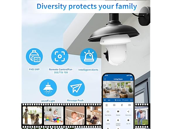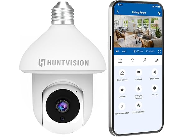 HUNTVISION Light Bulb Camera, E3LT Wireless Security Camera 3MP Full HD, 360° View, 2.4G WiFi, Two-Way Talk, Color Night Vision, Compatible with Alexa/Google Home