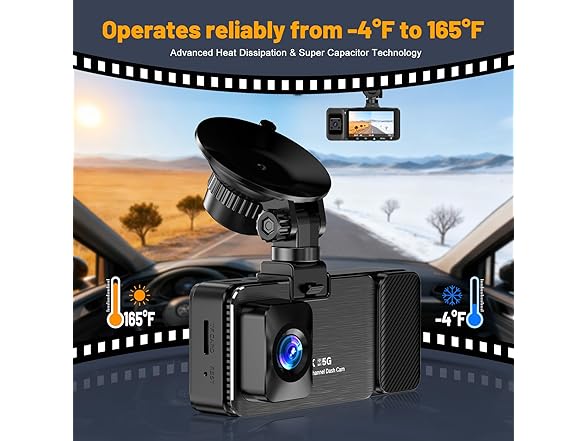 - 【Withstands Extreme Temperatures】This dashcam features a high-strength aluminum alloy housing that delivers robust construction and efficient heat dissipation. Whether facing freezing frost or scorching heat, it maintains stable performance, consistently producing high-quality footage to withstand any extreme weather challenge.