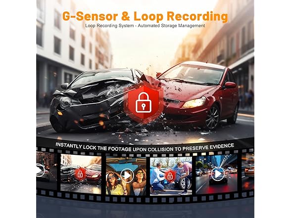 - 【Smart Collision Lock & Evidence Preservation】Equipped with a high-sensitivity G-Sensor, the device instantly encrypts and locks the current video upon detecting sudden impacts like collisions, preventing overwriting. Combined with automatic loop recording, it eliminates storage space concerns, ensuring continuous capture of the latest footage. (Supports expansion up to 256GB MicroSD card)