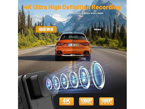 - 【Triple-Camera Ultra-HD Recording, Mastering All-Around Road Conditions】This dashcam integrates front, interior, and rear high-definition cameras to simultaneously capture footage from three perspectives. The front 4K ultra-HD dashcam captures road details, the interior 1080P dashcam records driver-passenger interactions, while the rear 1080P dashcam monitors rear-end movements. This three-in-one system builds a blind-spot-free safety view for you.