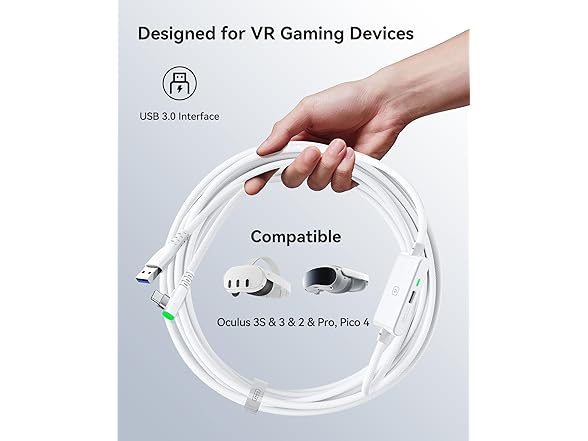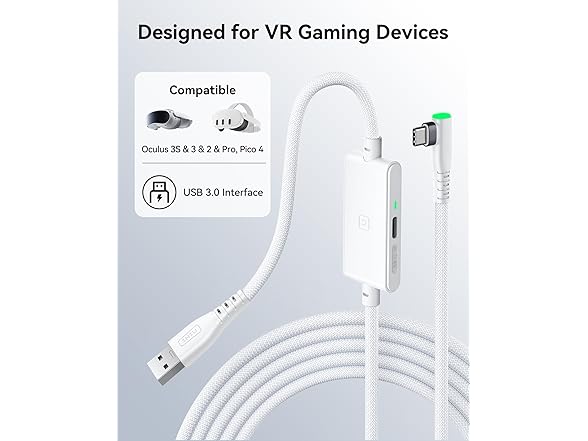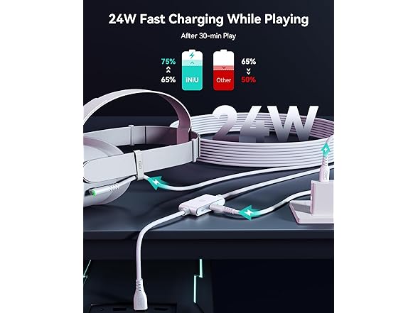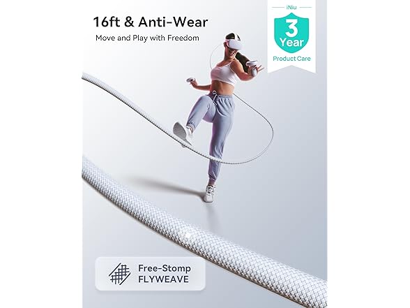 INIU 16ft Premium VR Link Cable with Charging, USB 3.0 Compatible with Meta Quest 3s Oculus Quest 3/2/Pro, Pico 4, PC VR & Steam VR