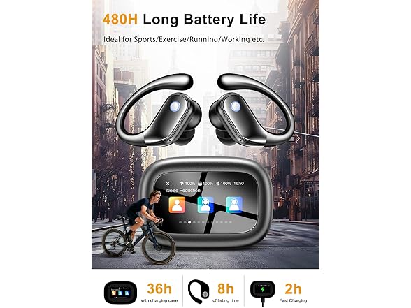 - Revolutionary Touchscreen Control Case: Breaking traditional sports earbud design, our Bluetooth earbuds feature not only smart single-tap controls but also an multifunction touchscreen charging case. With fingertip touches, effortlessly switch songs, adjust volume, 5 EQ modes, locate earbuds, or take calls. Whether in work meetings or intense workouts, the Smart Interactive System keeps your music experience effortlessly smooth—delivering true hands-free control.
