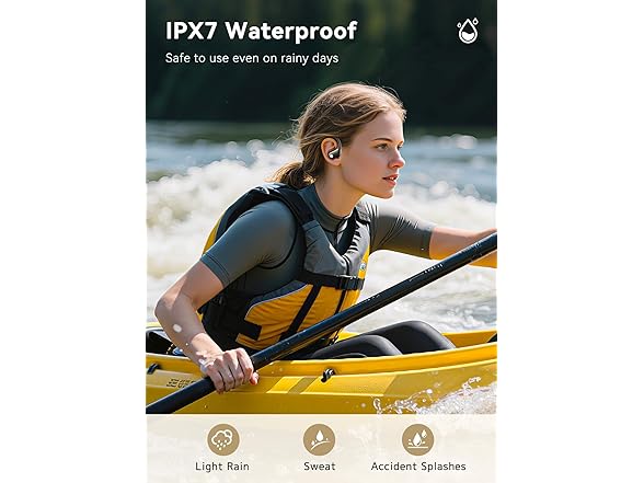 - Ergonomic Sport Design & IPX7 Shield: Featuring flexible silicone earhooks and 3 sizes of ear tips (S-L) for a secure, "gravity-defying" fit—perfect for high-intensity gym workouts, burpees, and sprints. The IPX7 waterproof rating, verified by 5,000 lab tests, ensures peak performance during mountain climbing, rainy-day cycling, or heavy sweating. From office commutes to weekend hikes, they stay comfortable all day.