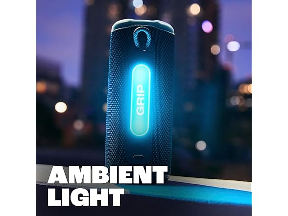 Easy to grab and easy to hold, the JBL Grip is the speaker that’s always within reach. The JBL Grip is powerful for its size. JBL Grip may be compact, but its pro sound is big—punchy bass and crystal-clear highs. Whether it’s setting the vibe for mindful morning stretches or soundtracking lazy beach days, the JBL Grip is our go-to. The built-in ambient light on the back panel adapts to the moment, so you can set the mood for chill date nights and spontaneous hangs. Use the convenient side-panel control button to switch between light themes, so the mood is always right whether you're winding down or turning up. Did we mention it’s super tough? The JBL Grip is built to handle anything. With an industry-leading IP68 waterproof and dustproof rating, it goes wherever we do. Its drop-proof design means it can survive a hard fall onto concrete—no party fouls here. All that, plus up to 14 hours of playtime with Playtime Boost. When friends roll through, we’re using Auracast™ to stereo pair two Grips for instant surround sound. Why stop there? We can connect as many JBL Auracast™-enabled speakers as we’ve got for an all-out sound experience. Solo chillin’ or vibing with the crew—the JBL Grip is as flexible as we are.