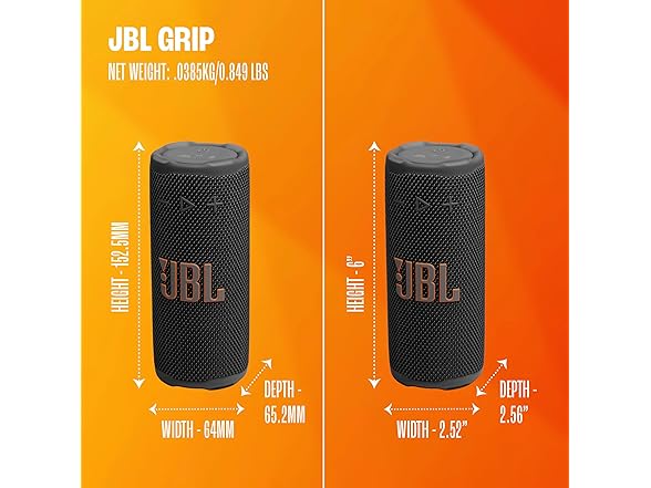 - Waterproof, dustproof, and drop-proof: We designed the JBL Grip to handle the bumps and bruises of everyday fun. Along with its waterproof and dustproof IP68 rating, it's also drop-proof—built to keep playing even after a 1-meter drop onto concrete.