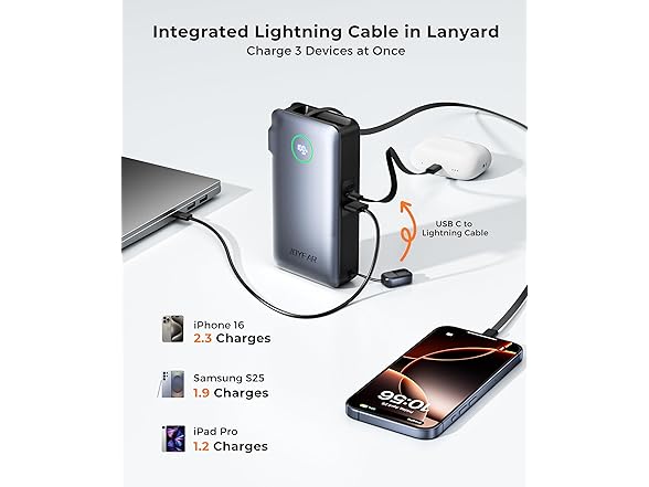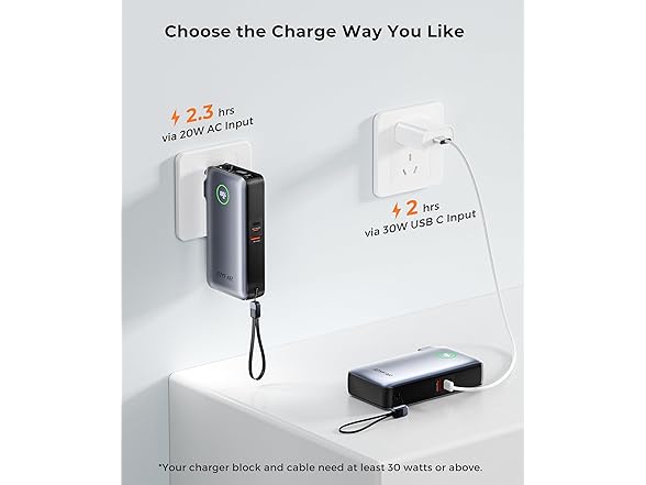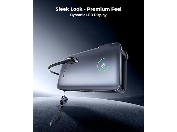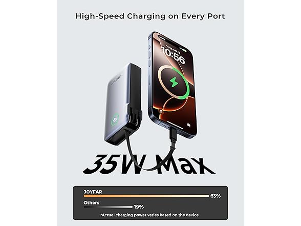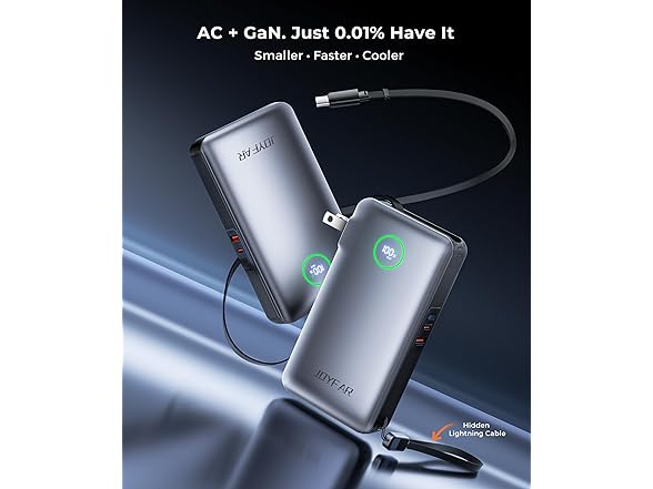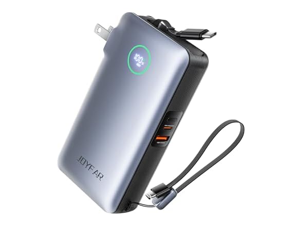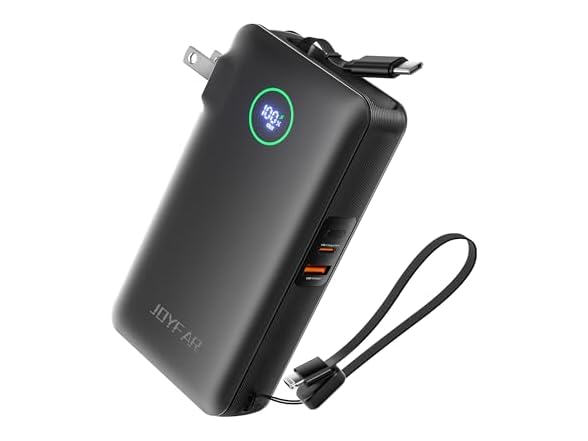 JOYFAR 10,000mAh 35W GaN Powerbank with AC Plug & Built in Cables