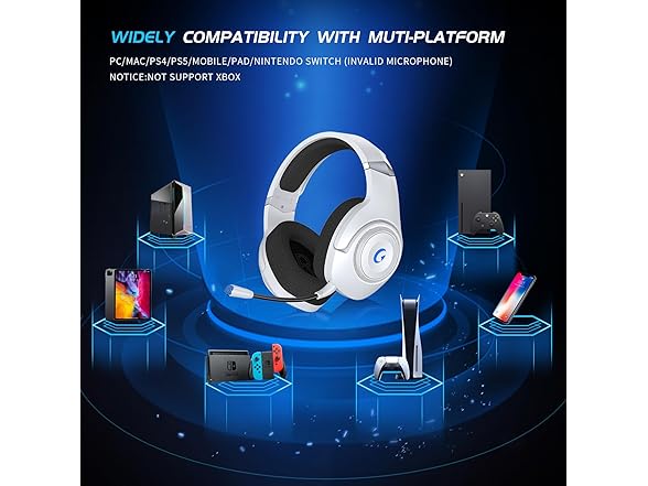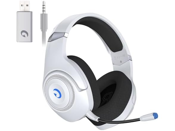 - 【Versatile PS5 Gaming Headset Connectivity】Enjoy seamless connectivity with the PS5 gaming headset via a 2.4GHz receiver, linking to PC, PS4, PS5, Switch, and more controllers. Switch to Bluetooth mode with a double-click for mobile devices like phones and tablets (and Switch). Use the audio cable to connect to devices with a 3.5mm socket; Xbox Series headsets are compatible (power off for wired mode).