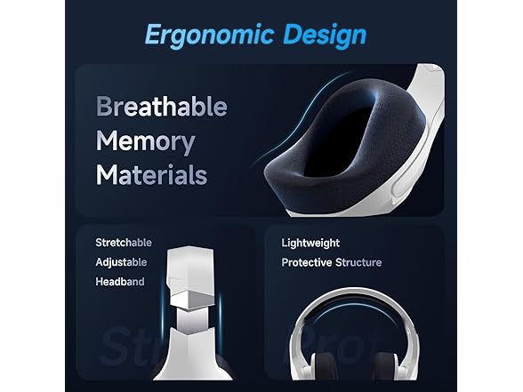 - 【Ultimate Comfort Wireless Gaming Headphones】Experience ultimate comfort with wireless gaming headphones featuring breathable mesh fabric, a wider head beam for pressure relief, an adaptive ear shell design, and a feather-light build.