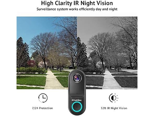 LaView WiFi Doorbell Camera, 1080P Video Doorbell AI Human Detection, Door Camera with IR Night Vision, 2-Way Audio, IP65 Waterproof, Easy Installation USA Cloud Server