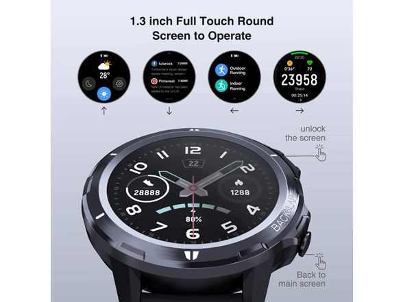 - 5ATM Waterproof: ID216 Smart Watch is built to withstand all your sweaty workouts no matter what the weather. Rain or shine, nothing is stopping you.