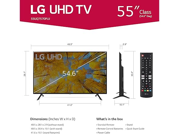 LG 55-Inch Class UQ7570 Series 4K Smart TV, AI-Powered 4K, Cloud Gaming (55UQ7570PUJ, 2022), Black