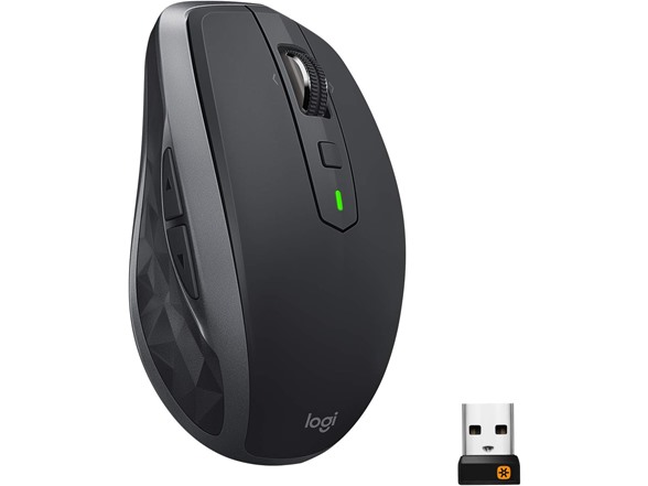 The MX ANYWHERE 2S is the advanced mobile mouse for power users. Harness the power of Logitech Flow and take multi-computer use to a bold new level. Control up to three computers and seamlessly move text, images and files between devices. Scroll through documents and web pages faster and easier with the hyper-fast scroll wheel. MX ANYWHERE 2S is ready when you are. It holds a full charge for over two months and in just three minutes you get enough power for a full day of usage. Work virtually anywhere with high precision tracking --even on glass.* Its compact, sculpted shape is crafted to provide the control you need anywhere- at home, at work or on the go.