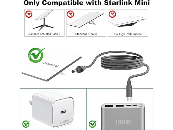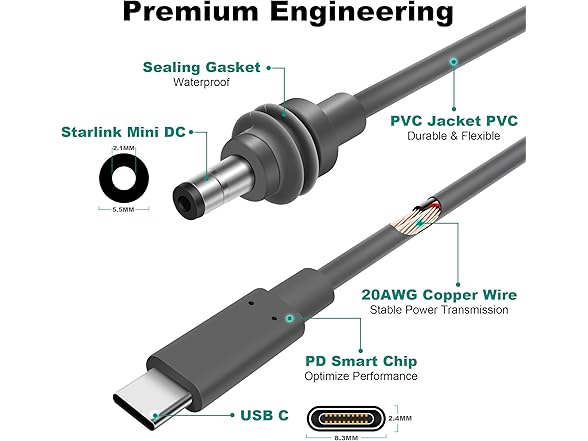 Starlink Mini USB C Cable - 20AWG 6.5FT/2M PVC Waterproof Jack Starlink Mini Cable Type-C to DC Accessories, Stabilized, Portable, Compatible with 100W+ PD Source