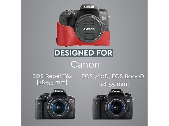 MegaGear Ever Ready Leather Camera Case & Strap - Compatible with Canon EOS Rebel T6s/760D/8000D (18-55mm)